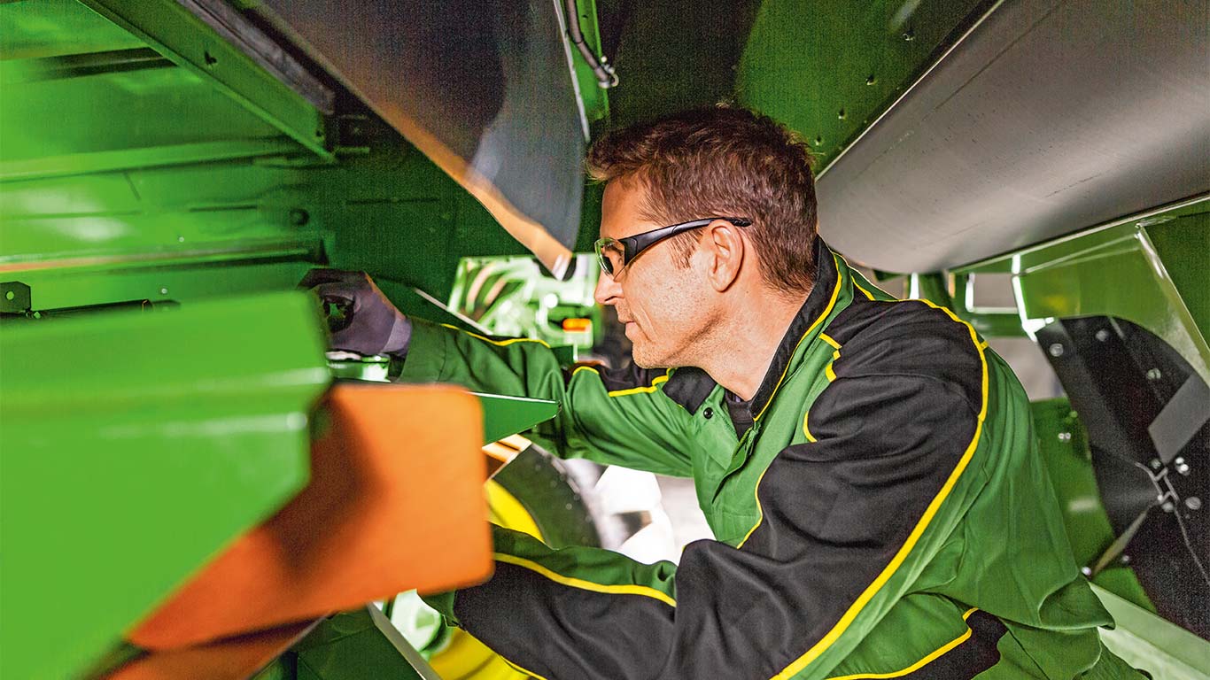 Kad je potrebno pokupiti kulture, nema vremena za zastoje. Tehničari tvrtke John Deere redovito se osposobljavaju i imaju pristup tvorničkim alatima, analitici i softveru za analizu statusa i potreba vašeg stroja. To može smanjiti rizik od zastoja u radu do 90 %.