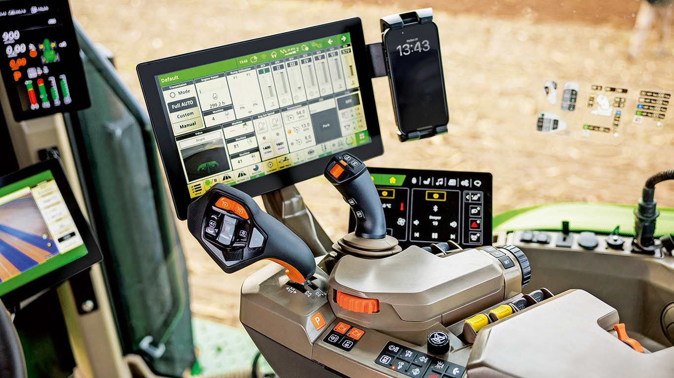 Traktori serije 8, s dokazanih 3,30 m³ CommandView™ 4 kabine s podesivim ovjesom ili ActiveSeat™ II, 65° zakretanje sjedala, tri oslonca za noge, radio druge generacije s dodirnim zaslonom s bežičnim Apple CarPlay® i Android Auto™, plus premium 6.1 zvučni sustav, postavite mjerilo u udobnosti kabine. Novo električno podesivo sjedalo s funkcijom memorije, prozračivanjem vrata i opcijama masaže nudi vrhunsku udobnost čak i tijekom dugih radnih dana. CommandARM sljedeće generacije™ s novim Zaslonom praktičnosti, novi CommandXPlus ili CommandXPro omogućuje vam upravljanje svim ključnim funkcijama nadohvat prstiju.