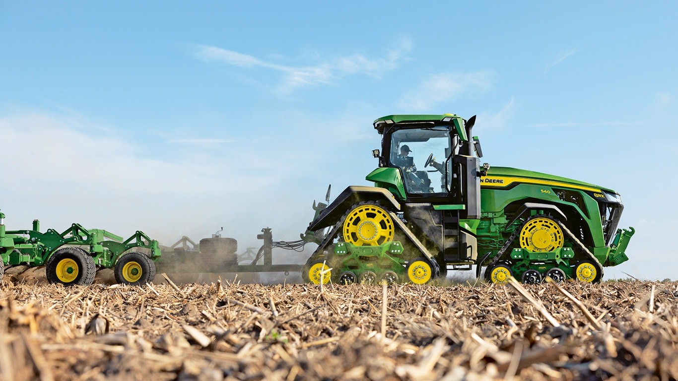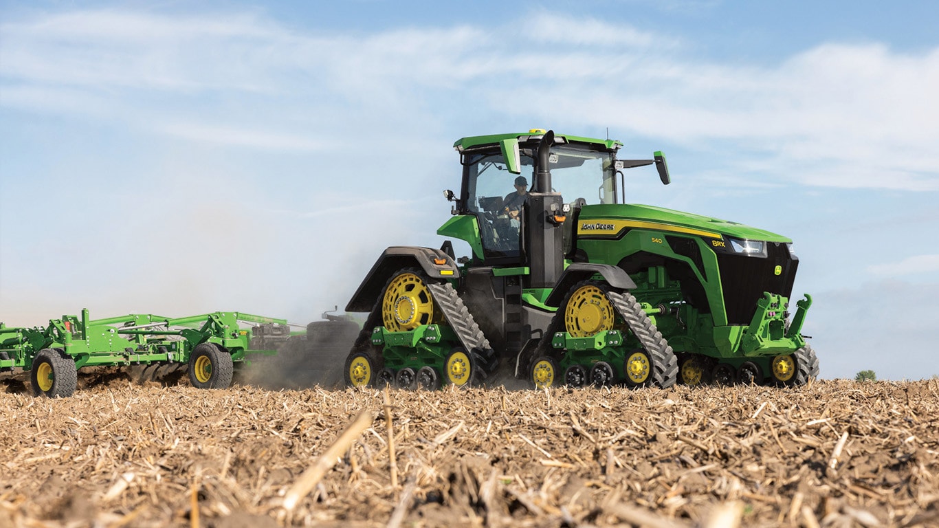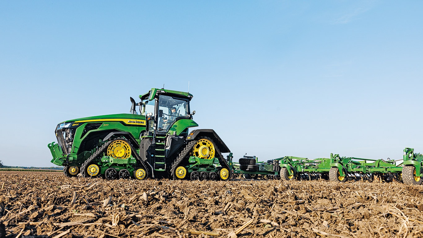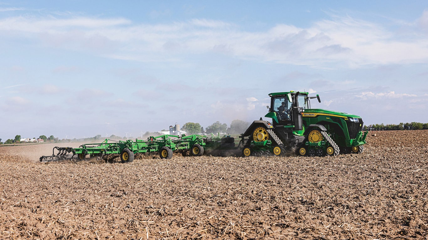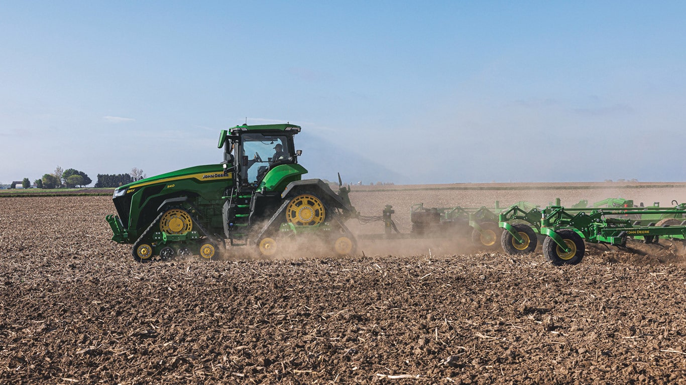 Novi traktori 8R High Horsepower pružaju vučnu snagu koja vam je potrebna za najtežu priključnu opremu. S IPM-om vršne snage, motor JD14 pruža do 634 KS točno kada je to potrebno za vrhunsku produktivnost u bilo kojem stanju. Jedinstveni eAutoPowr™ pruža ubrzanje beskonačnim prijenosom i do 8 % bolji prijenos snage u usporedbi sa standardnim hidromehaničkim beskonačnim prijenosima*.